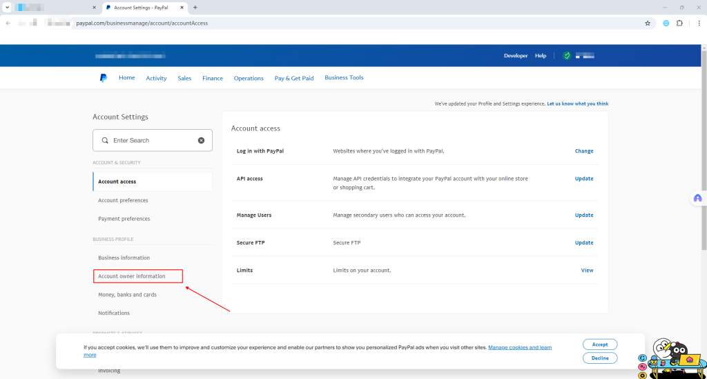On the “Account Settings” page, find the “Account Owner Information” option and click to enter.