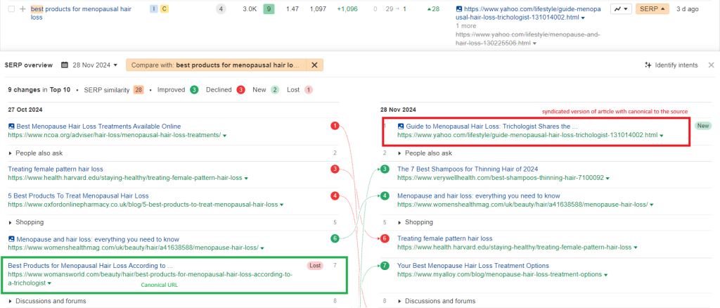 - Google’s algorithm appears to befavoring syndicated content over original sources in some instances, even when the canonical link is correctly placed.